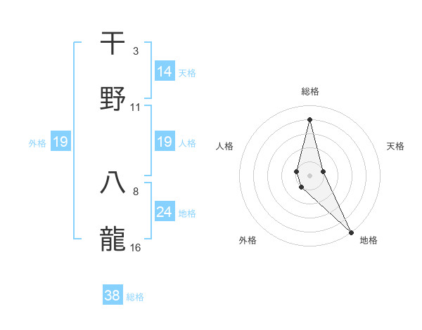 干野 八龍さんの総格は38画の4点!