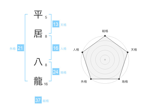 平居 八龍さんの総格は37画の5点!