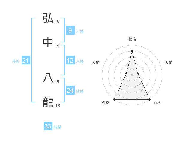 弘中 八龍さんの外格は21画の5点!