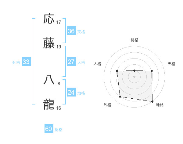 応藤 八龍さんの地格は24画の5点!
