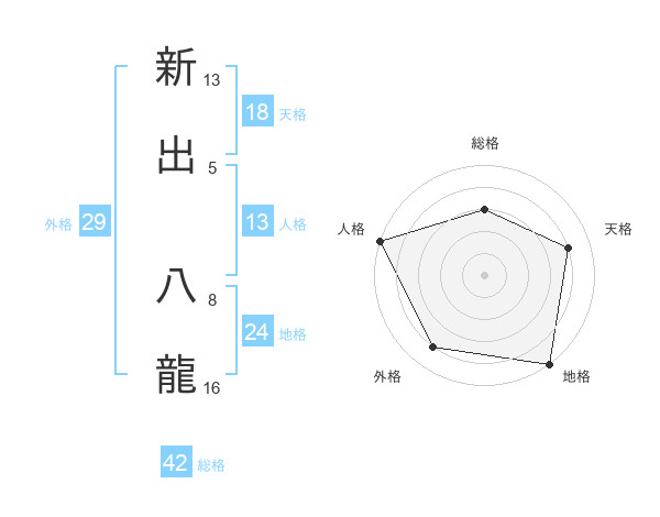 新出 八龍さんの人格は13画の5点!