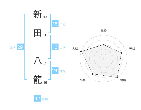 新田 八龍さんの外格は29画の4点!