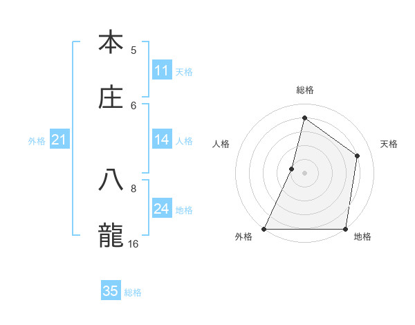 本庄 八龍さんの外格は21画の5点!