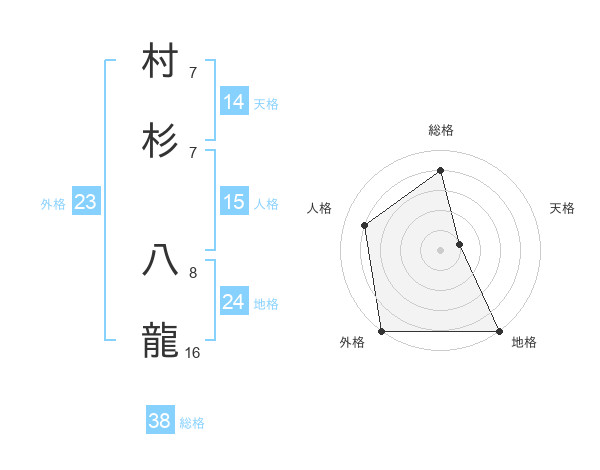 村杉 八龍さんの総格は38画の4点!