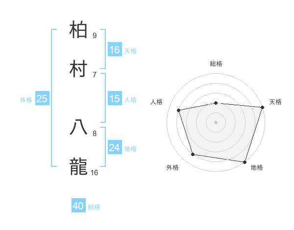 柏村 八龍さんの天格は16画の5点!