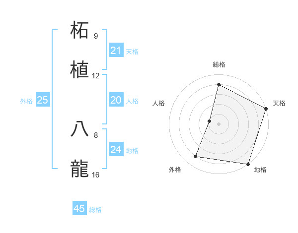 柘植 八龍さんの総格は45画の4点!