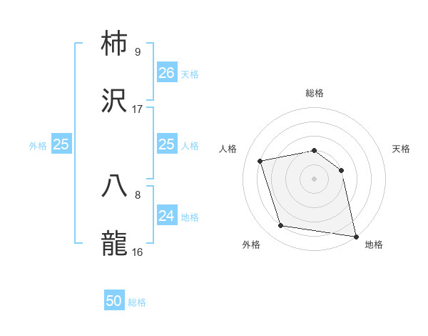 柿沢 八龍さんの総格は50画の2点!