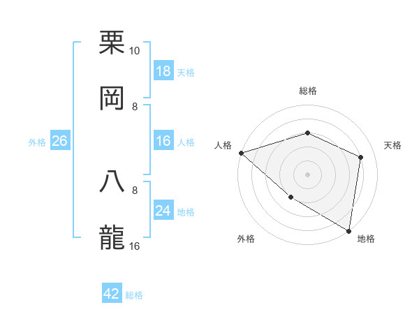 栗岡 八龍さんを姓名の画数から五運を鑑定