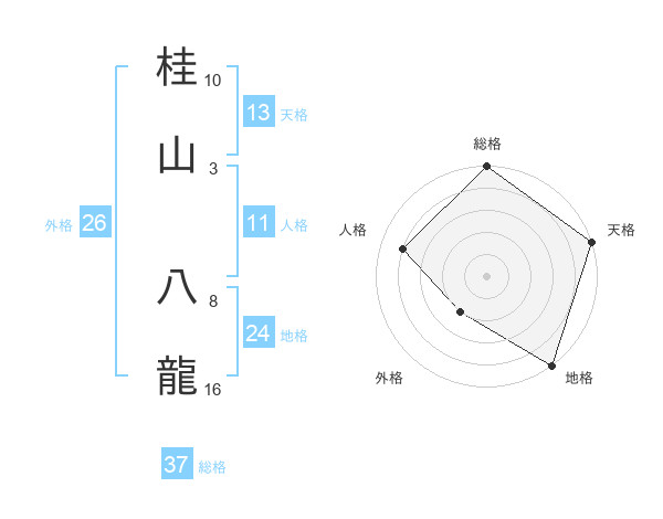 桂山 八龍さんを姓名の画数から五運を鑑定