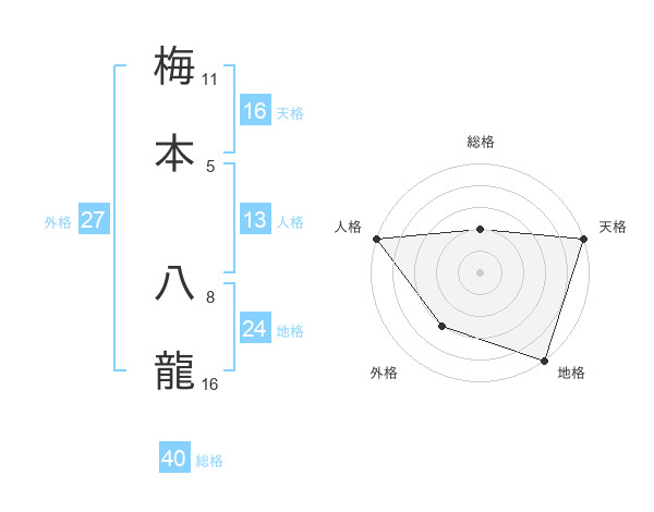 梅本 八龍さんの地格は24画の5点!