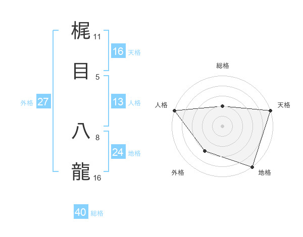 梶目 八龍さんを姓名の画数から五運を鑑定