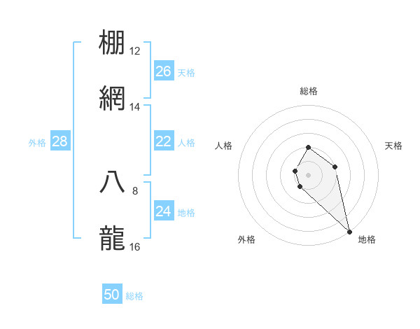 棚網 八龍さんを姓名の画数から五運を鑑定