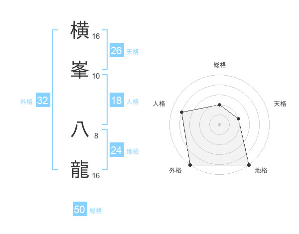 横峯 八龍さんを姓名の画数から五運を鑑定