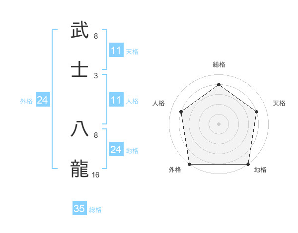 武士 八龍さんの総格は35画の4点!