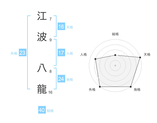 江波 八龍さんの外格は23画の5点!
