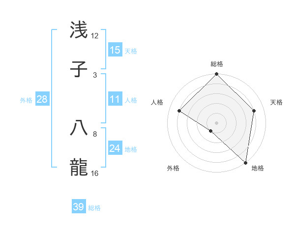 浅子 八龍さんの総格は39画の5点!