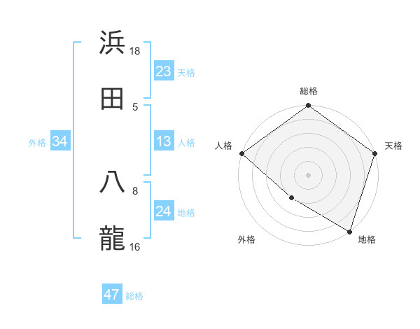 浜田 八龍さんの総格は47画の5点!