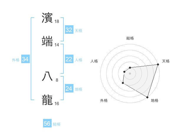 濱端 八龍さんの総格は56画の1点!