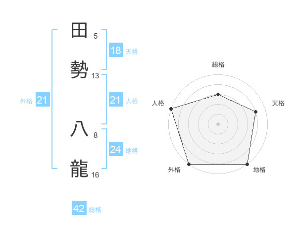田勢 八龍さんの外格は21画の5点!