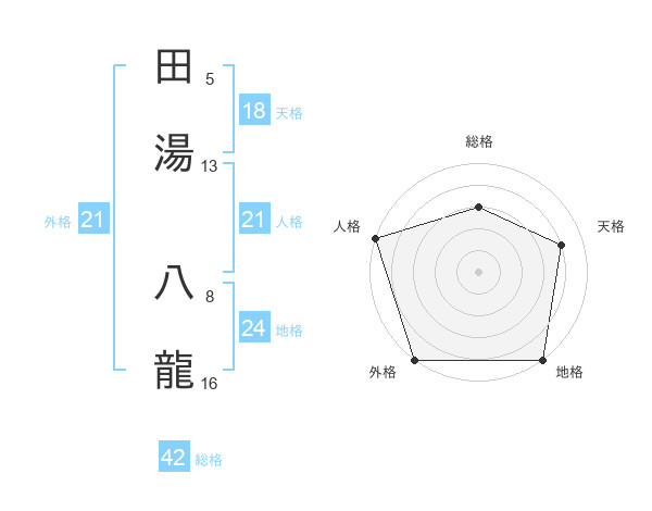 田湯 八龍さんの外格は21画の5点!