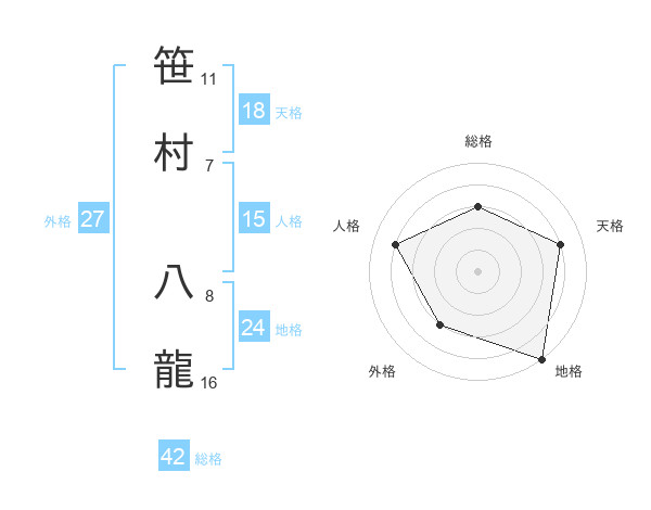 笹村 八龍さんを姓名の画数から五運を鑑定