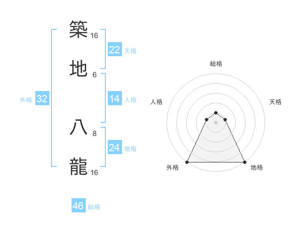 築地 八龍さんの天格は22画の1点!
