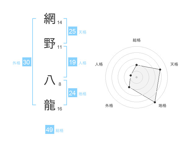 占い結果は姓名判断である以上、良い場合も悪い場合もありますが、決してお名前を誹謗中傷するものでなく、画数の自動計算によって得られたものです。また、本サイトの検索によって得られた鑑定結果で、第三者を誹謗中傷したり名誉を棄損するような行為を禁じます。