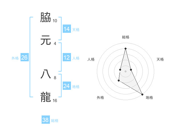 脇元 八龍さんを姓名の画数から五運を鑑定