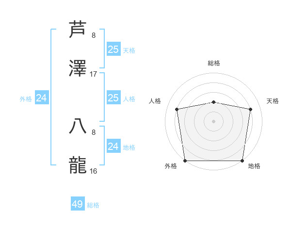 芦澤 八龍さんの総格は49画の2点!