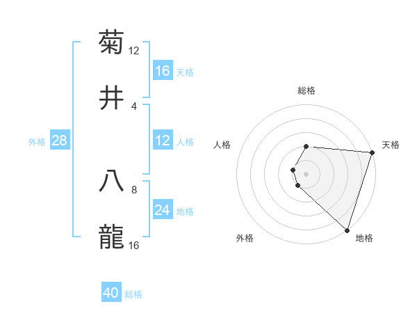 菊井 八龍さんの天格は16画の5点!