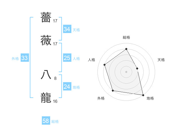 薔薇 八龍さんを姓名の画数から五運を鑑定