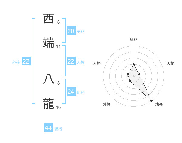 西端 八龍さんの総格は44画の2点!
