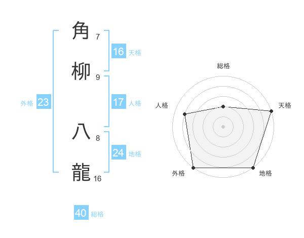 角柳 八龍さんの外格は23画の5点!