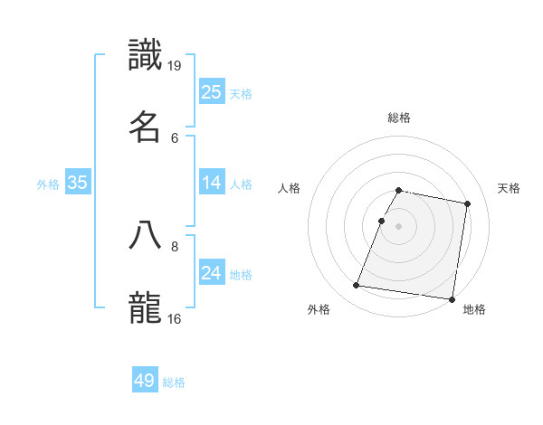 識名 八龍さんの総格は49画の2点!