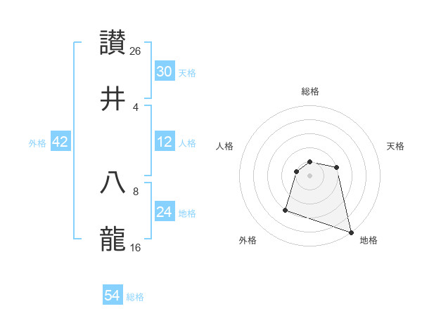 讃井 八龍さんの総格は54画の1点!