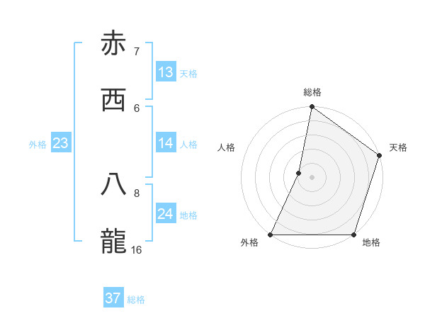 赤西 八龍さんを姓名の画数から五運を鑑定