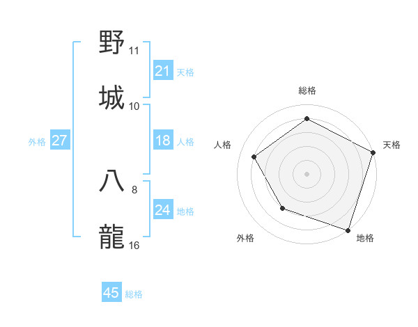 野城 八龍さんの総格は45画の4点!