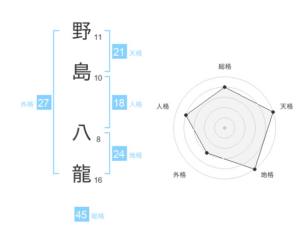野島 八龍さんの総格は45画の4点!