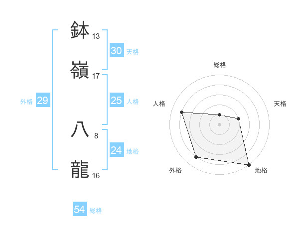 鉢嶺 八龍さんの総格は54画の1点!