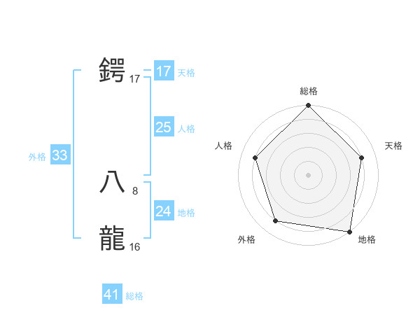 鍔 八龍さんの天格は17画の4点!