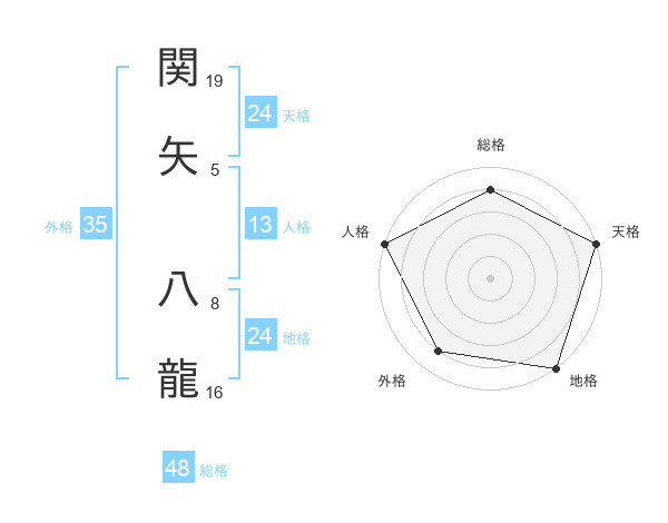 関矢 八龍さんの総格は48画の4点!