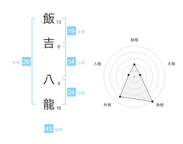 飯吉 八龍さんの総格は43画の2点!