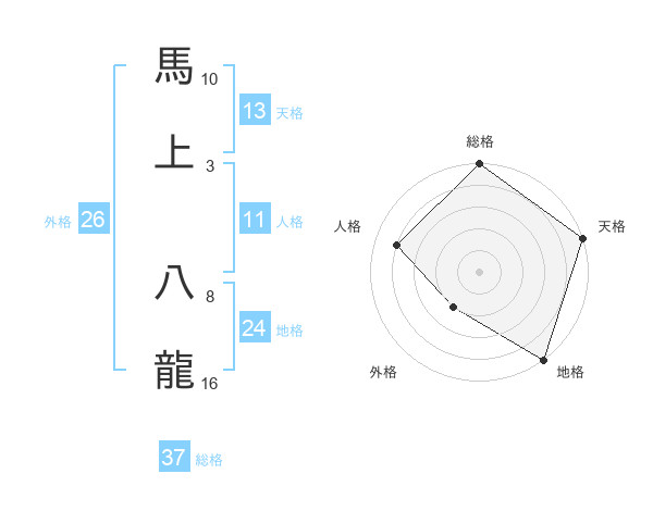 馬上 八龍さんを姓名の画数から五運を鑑定