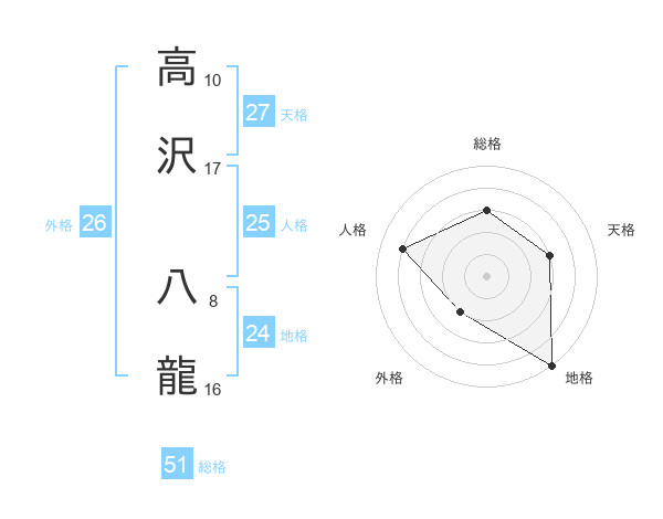 高沢 八龍さんを姓名の画数から五運を鑑定