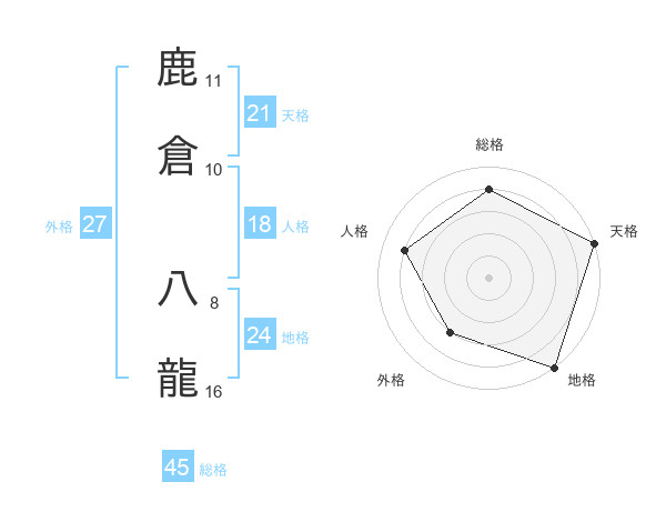 鹿倉 八龍さんを姓名の画数から五運を鑑定