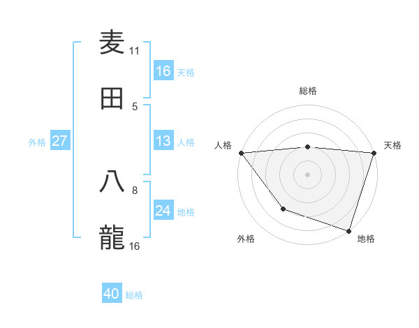 麦田 八龍さんの外格は27画の3点!