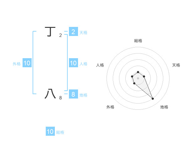丁 八さんの総格は10画の1点!