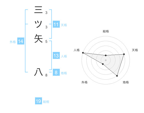 三ツ矢 八さんを姓名の画数から五運を鑑定
