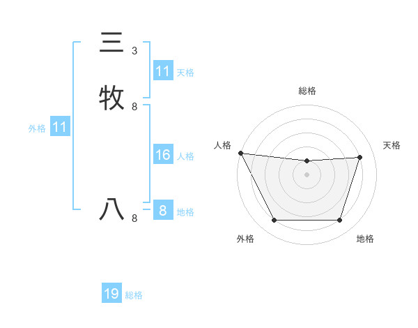 三牧 八さんの外格は11画の4点!
