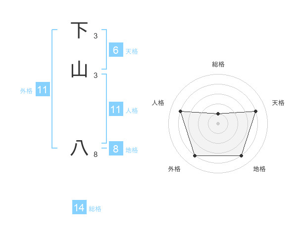 下山 八さんの人格は11画の4点!